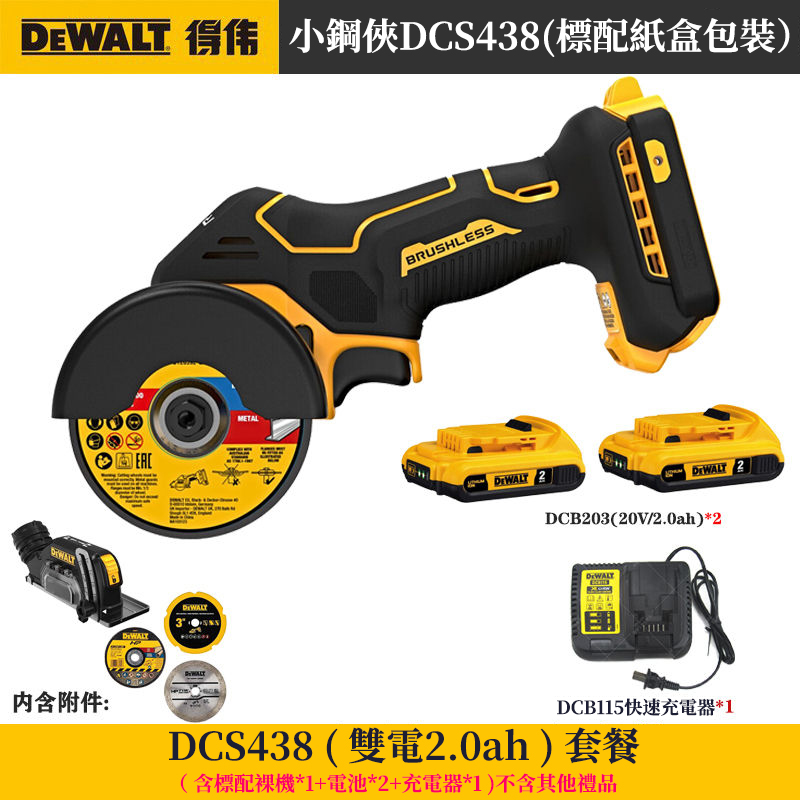 15分鐘前得偉「DeWALT」20V無刷角磨機DCS438小鋼俠 金屬、木材、水力、塑膠管、瓷磚都可切割 單手一機完成! - 小鋼炮【DCS438】两電一充