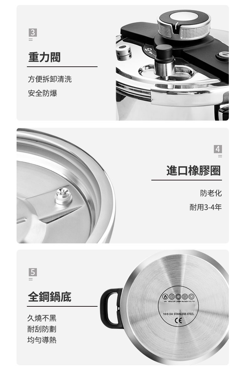 台灣之光【德國精品】304不鏽鋼壓力鍋 煮飯/熬粥/炖肉 自動限壓閥排氣保護安全防爆 耐用20年不壞 不滿意包退換