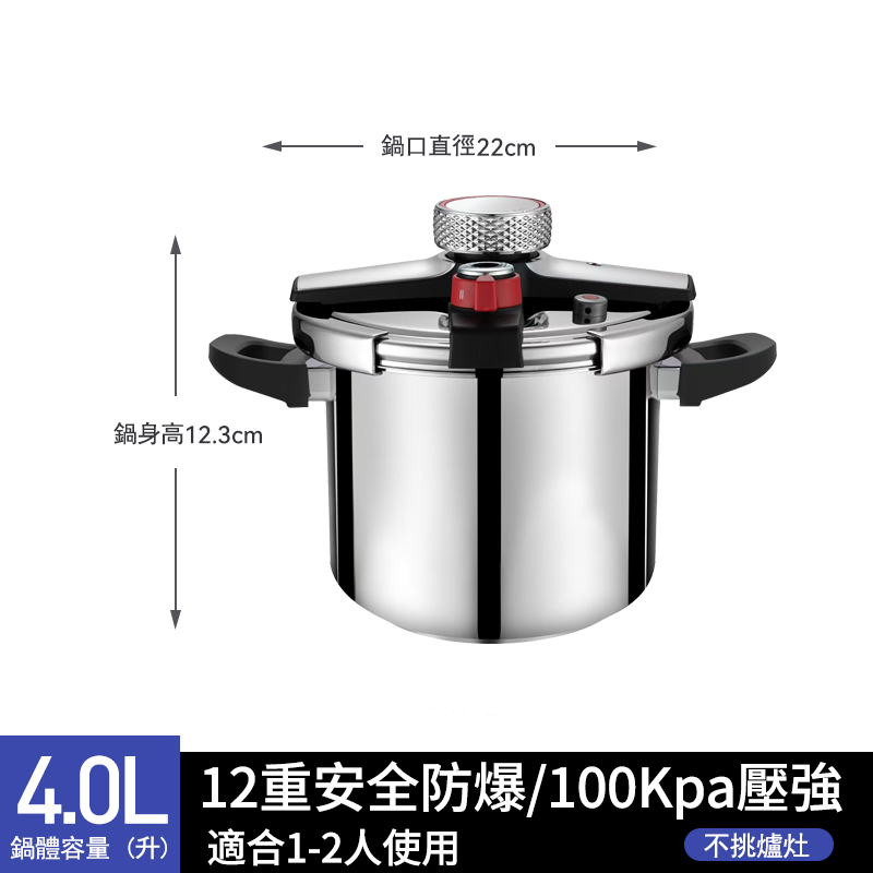 2分鐘前【年底換新大促】燃氣電磁爐通用【德國進口】304不鏽鋼壓力鍋 煮飯/熬粥/炖肉 自動限壓閥排氣保護安全防爆 耐用20年不壞 不滿意包退換 - 升級版八重保護304不鏽鋼重力閥4L強力壓力鍋(1-2人)NT$2380