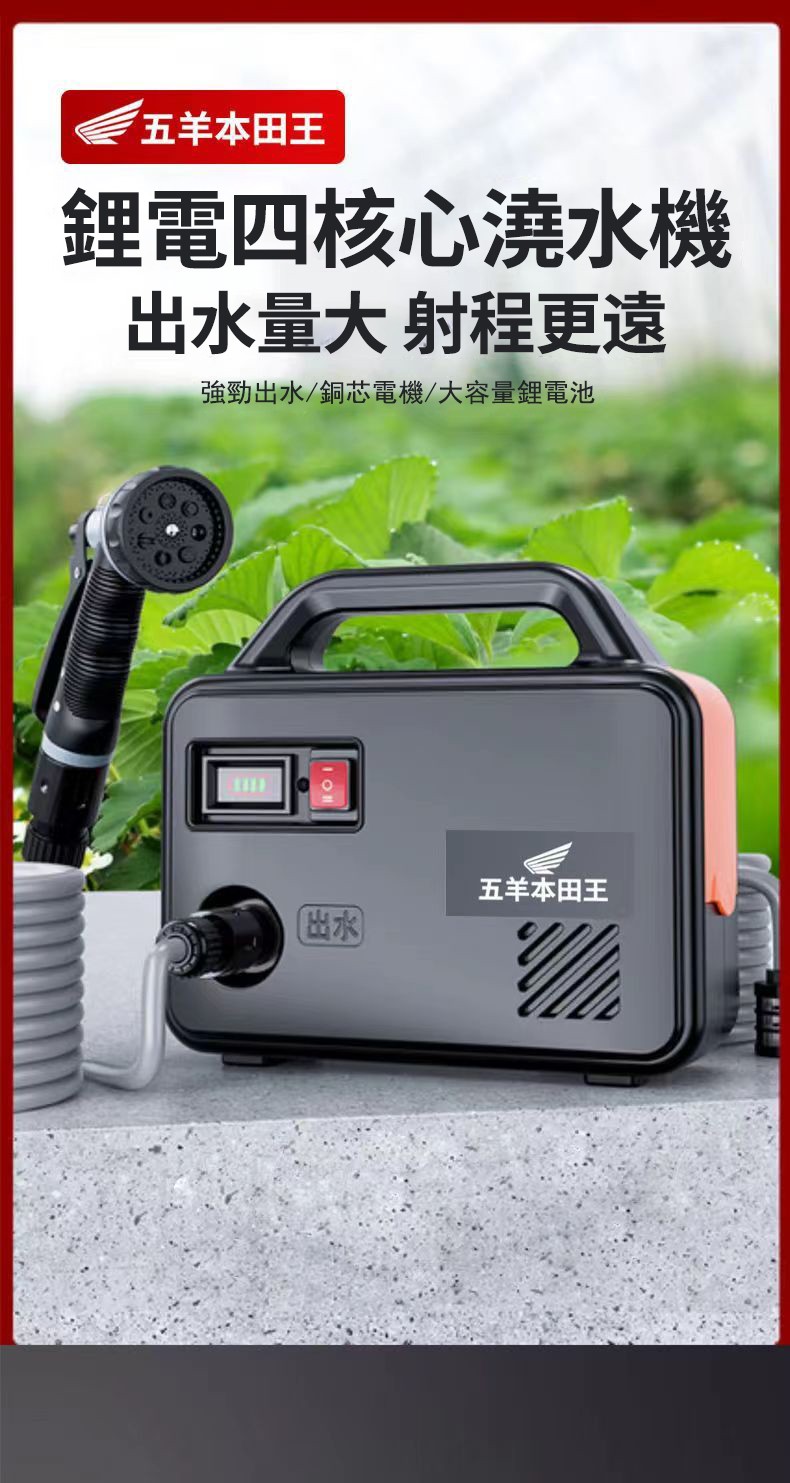 5分鐘前「日本進口」五羊本田王鋰電充電式抽水泵 全新一機升級,澆菜/打藥/洗車/灌溉輕鬆搞定‼️ 十年用不壞 - 【X5節單電】電量顯示 强续航1小時【螺旋聚压大水流】+10米管