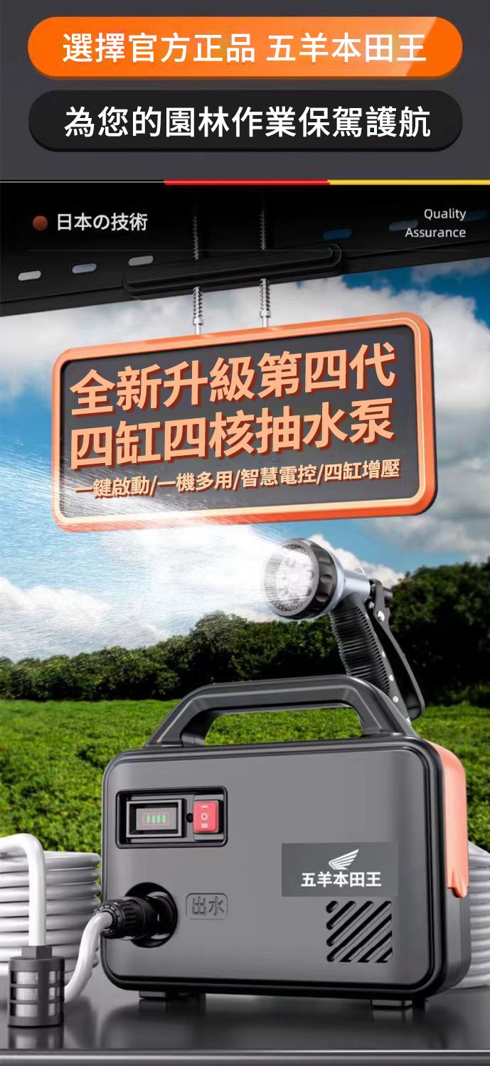 2分鐘前「日本進口」五羊本田王鋰電充電式抽水泵 全新一機升級,澆菜/打藥/洗車/灌溉輕鬆搞定‼️ 十年用不壞 - 【X15節單電】電量顯示 强续航3小時【螺旋聚压大水流】+10米管