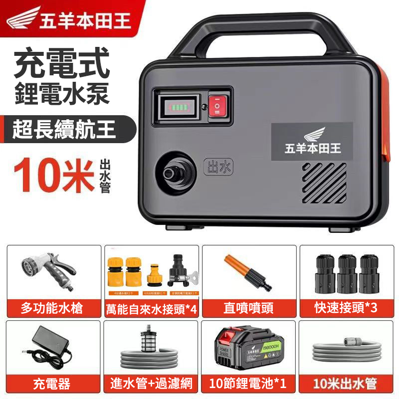 20分鐘前「日本進口」五羊本田王鋰電充電式抽水泵 全新一機升級,澆菜/打藥/洗車/灌溉輕鬆搞定‼️ 十年用不壞 - 【X10節單電】電量顯示 强续航2小時【螺旋聚压大水流】+10米管