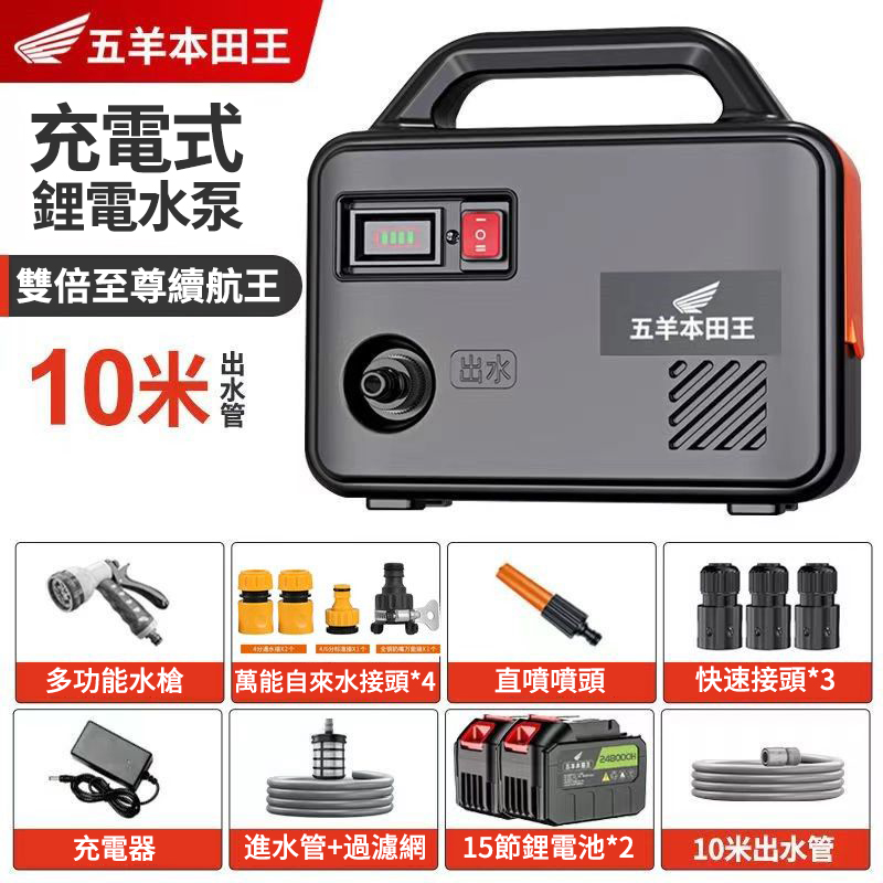 15分鐘前「日本進口」五羊本田王鋰電充電式抽水泵 全新一機升級,澆菜/打藥/洗車/灌溉輕鬆搞定‼️ 十年用不壞 - 【X15節雙電】電量顯示 强续航6小時【螺旋聚压大水流】+10米管