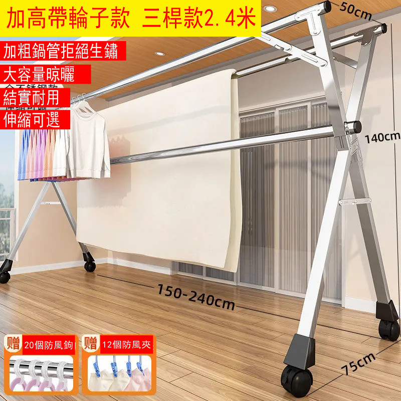 12分鐘前【下單即送20個防風掛鉤】不鏽鋼免安裝折疊家用伸縮式晾衣架 - 2025升級款加萬向輪2.4米【可伸縮-送20個防風鉤+12個防風夾】 NT$1990