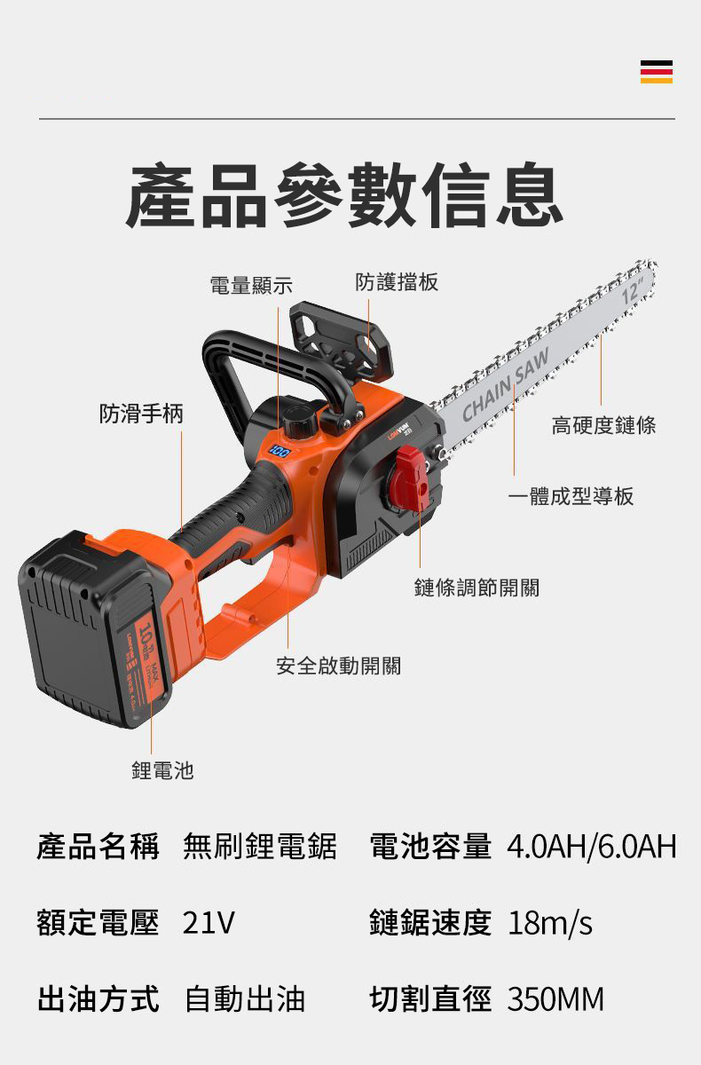 20分鐘前千元直降【東林官方 回饋國人】國民品牌 全新東林12吋鋰電伐木鋸 下訂僅需1980元!最後88組(保固一年 損壞包退換) - 12吋鋰電鋸(10節鋰電池)一電一充