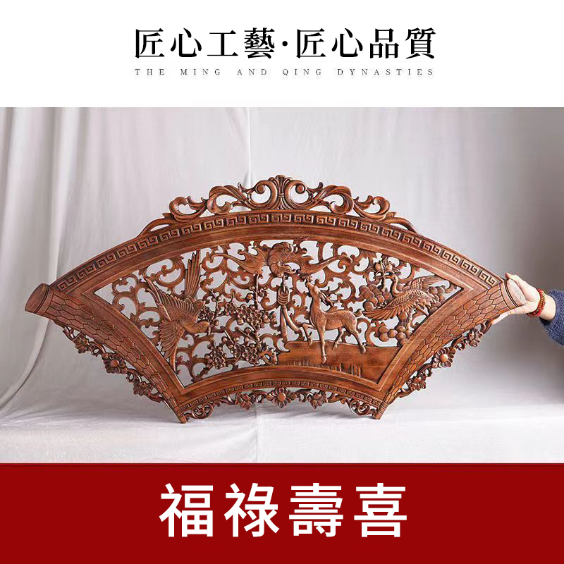 20分鐘前年到!福到! [東陽木雕] 傳承千年木上巧思——天然香樟木雕刻掛件 久放升值 家中旺!年年順! - 典藏款-扇形118*58cm---NT$4880