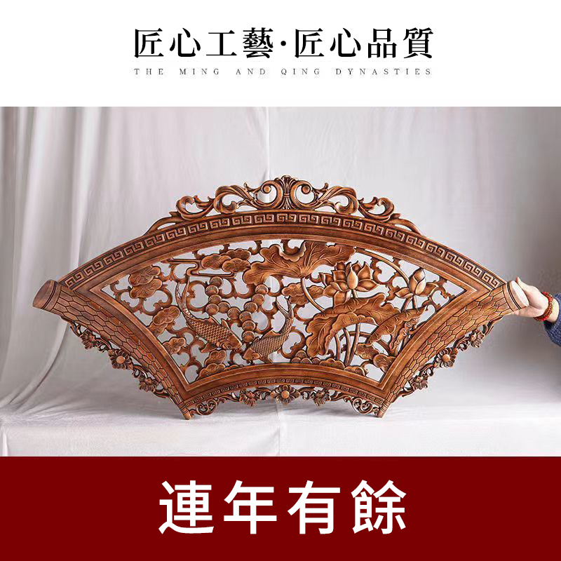 15分鐘前年到!福到! [東陽木雕] 傳承千年木上巧思——天然香樟木雕刻掛件 久放升值 家中旺!年年順! - 典藏款-扇形118*58cm---NT$4880