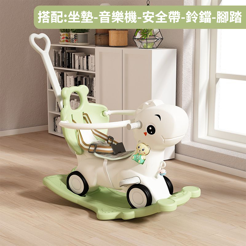 4分鐘前【大減價!大減價!】臺灣熱銷丨1-3週嵗生日禮物搖椅馬兩用搖搖車滑行車 兒童搖搖馬 - 加寬輪(青椰綠)大坐墊+餐盤+靠背+推桿護欄