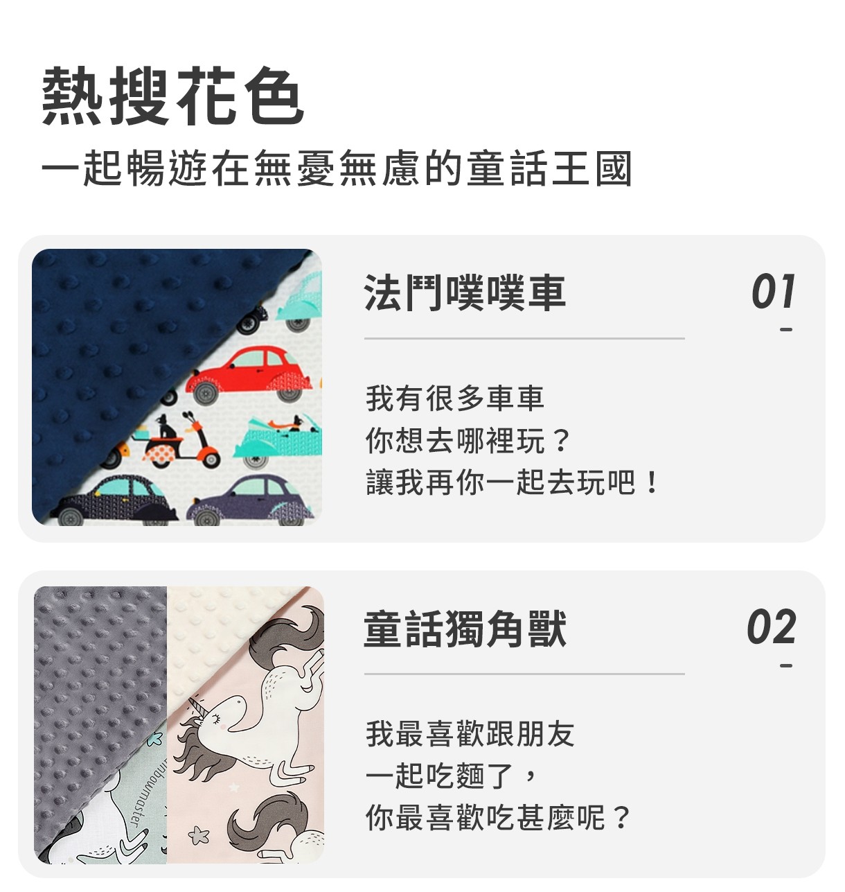 選擇高品質、國際認證安全的豆豆毯,幫助寶貝安撫情緒、創造安全感,訓練獨立入睡。