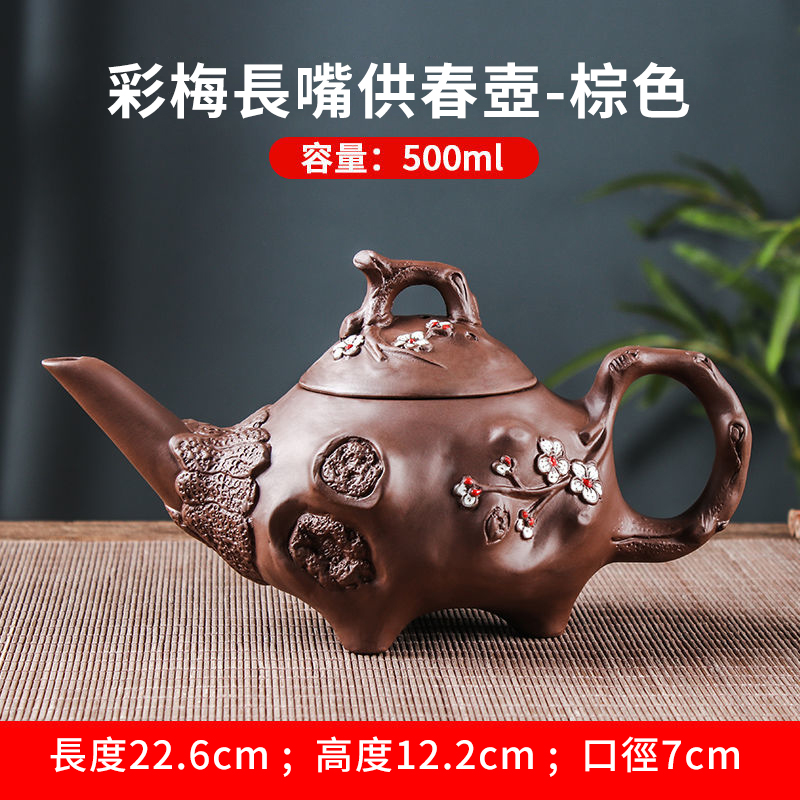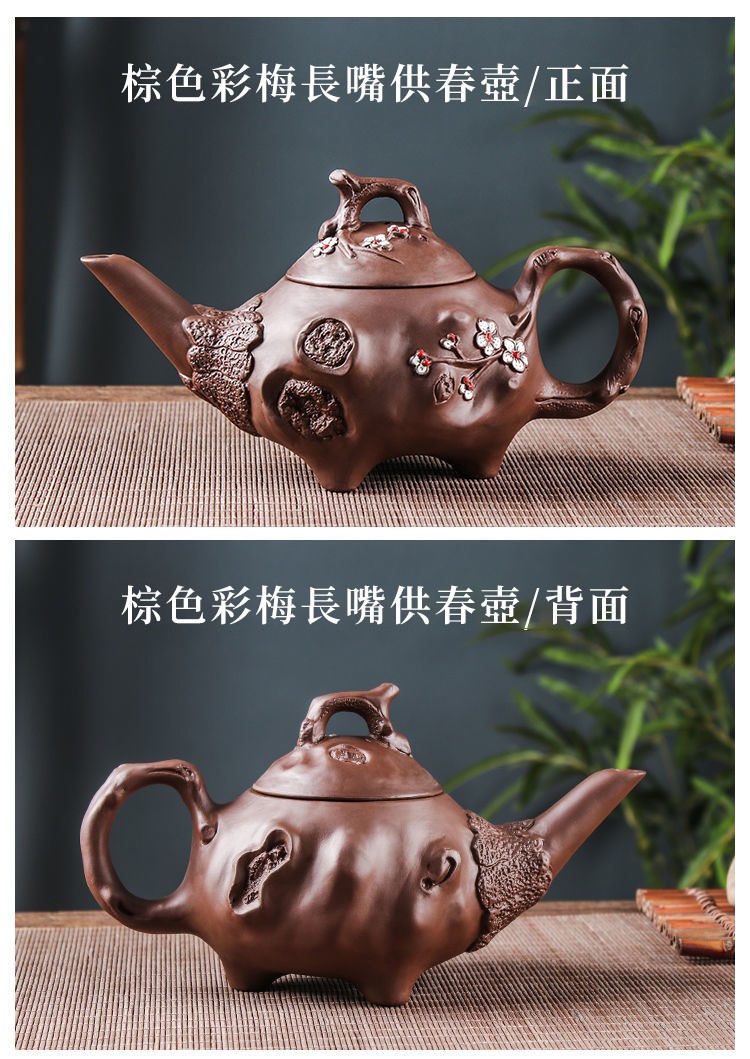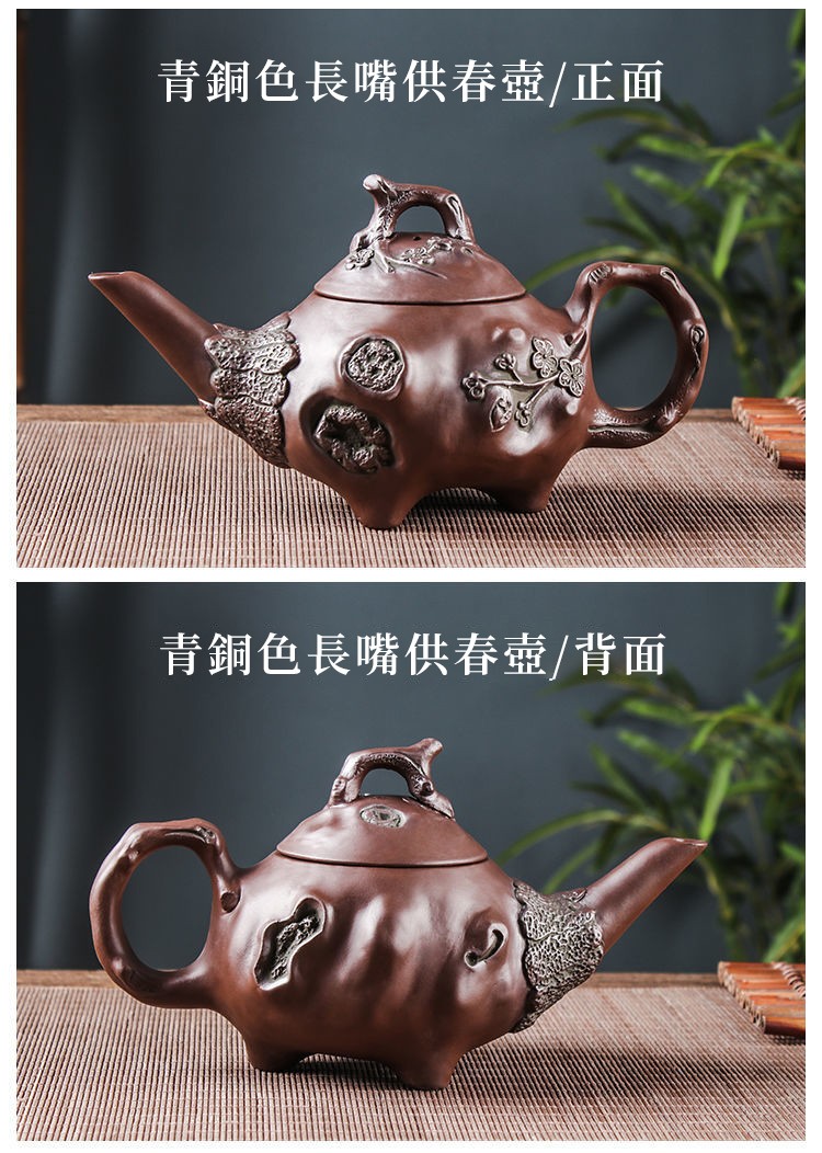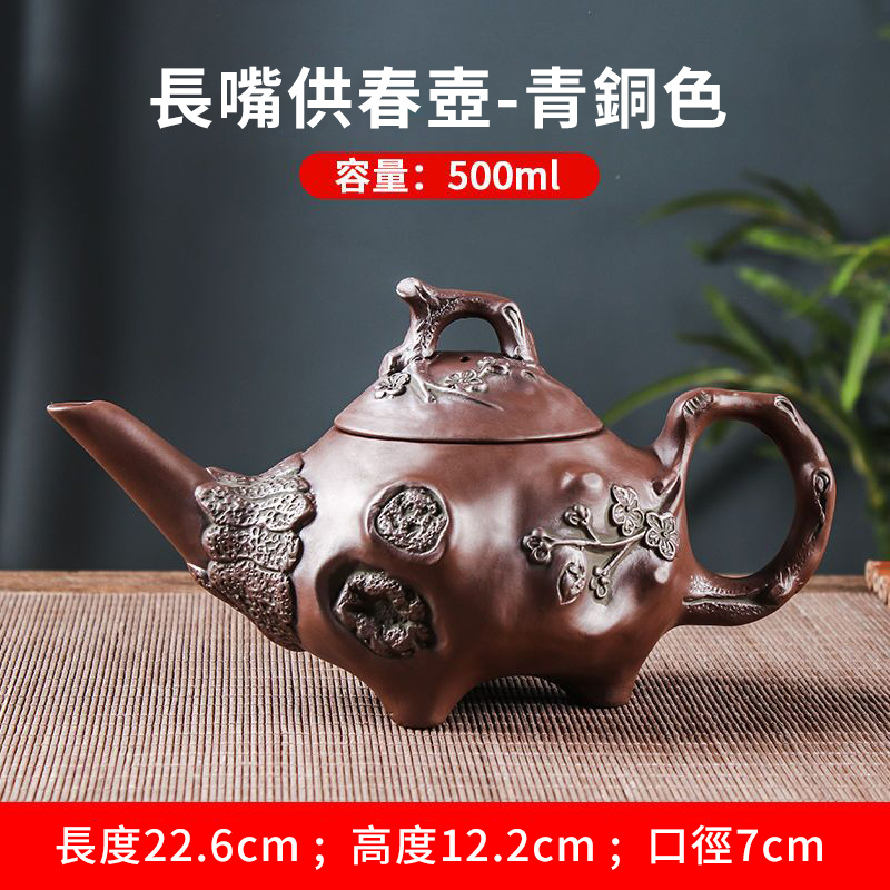 半小時前✩ 絕版收藏!正宗宜興紫砂朱泥長嘴供春壺 ❘ 黃金大容量500cc ❘ 純手工浮雕匠製,泡茶更香 - 紫砂朱泥長嘴供春壺500cc