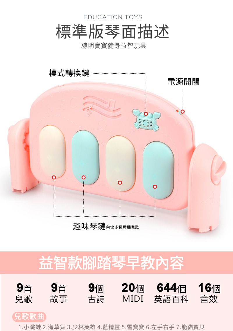 5分鐘前【破價預警】【寶寶成長特惠】0-1歲寶寶的神奇玩具-健身架音樂腳踏琴玩具,益智啟蒙好幫手! 讓寶寶從此放下手機、iPad! - 兒歌益智款【送充電】707內容+夜燈飛機+護欄