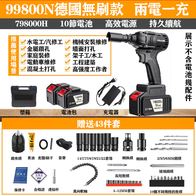 (送超值配件大禮包)全新升級大功率,拆卸、安裝、鑽孔,輕鬆應付多種場合