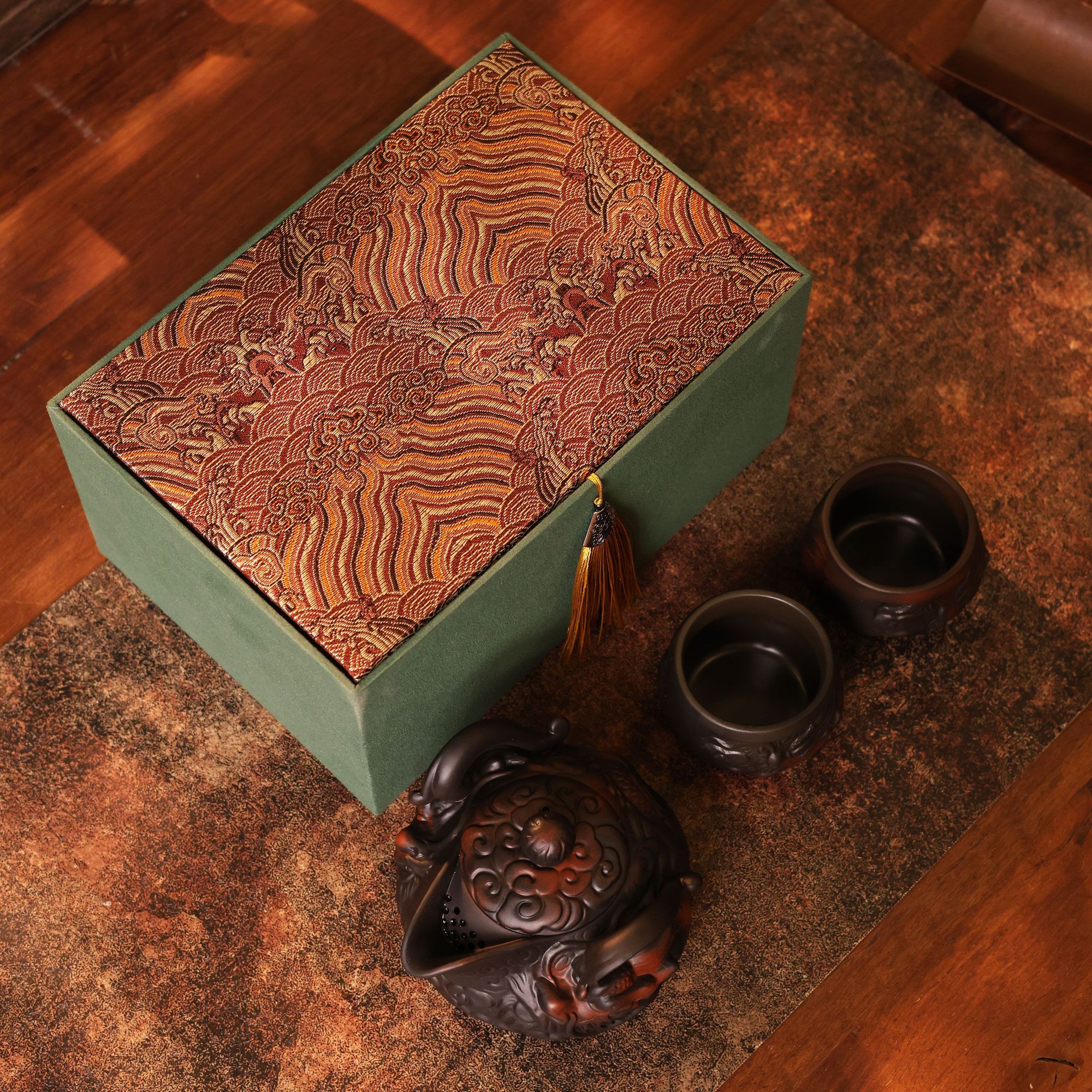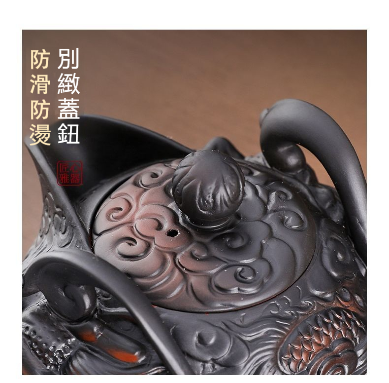 經典傳承・匠心打造|【大師純手工紫陶鳳鳴壺】復古跳刀紋漢瓦壺(一壺兩杯)・黃金大容量300cc + 球孔過濾,鳴音設計顯格調